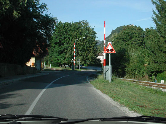 Brez kakršne koli pozornosti zapeljemo na prehod, saj so zapornice dvignjene, rdeče luči pa ne utripajo.