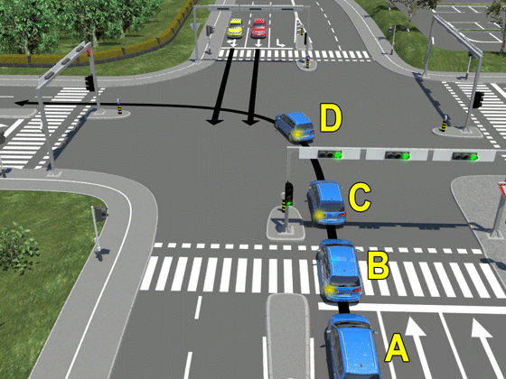 Pravilen odgovor je: Na sredini križišča (položaj D).