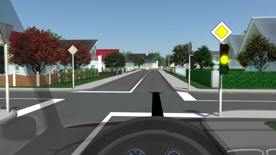 Zmanjšam hitrost, pogledam levo in desno ter če je cesta prosta, nadaljujem vožnjo.