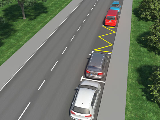 Ali je dovoljeno parkiranje na prikazani označbi na vozišču rumene barve?